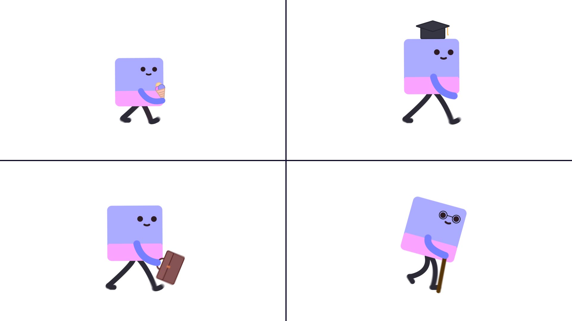 Der Stil der Animationen zeichnet sich durch einen größtenteils weißen Hintergrund aus. Simple Cartoon-Figuren veranschaulichen visuell die charakteristischen Merkmale von Autismus. Die Mimik verstärkt die Aussagekraft: Viele Figuren, besonders der „Quadrat-Charakter“ als Hauptfigur, haben verschiedene Gesichtsgrafiken, die situationsabhängig ausgetauscht werden.